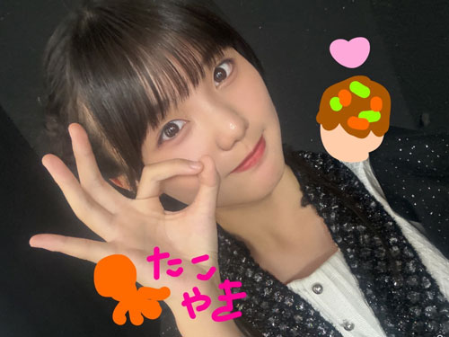 私ご飯を食べることが趣味で、公演で訪れた場所のご当地ご飯を全制覇することがゆくゆくの夢🗾🍚なんですけど、今回はたこ焼きが食べられなかったので、自分でたこ焼きポーズしました)^o^(