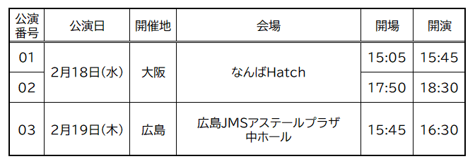 ※開場・開演時間などは変更になる場合もございます。予めご了承ください。