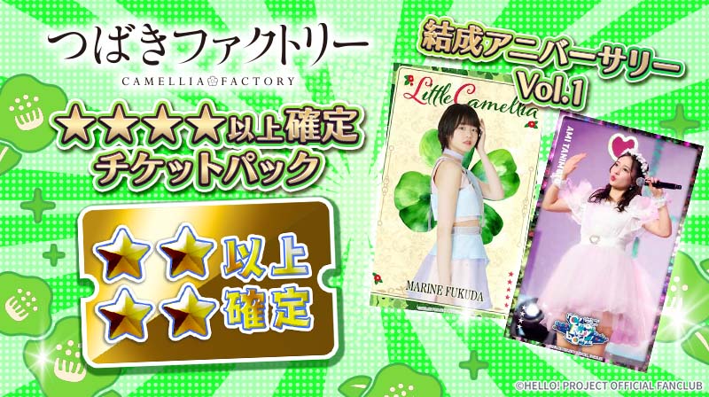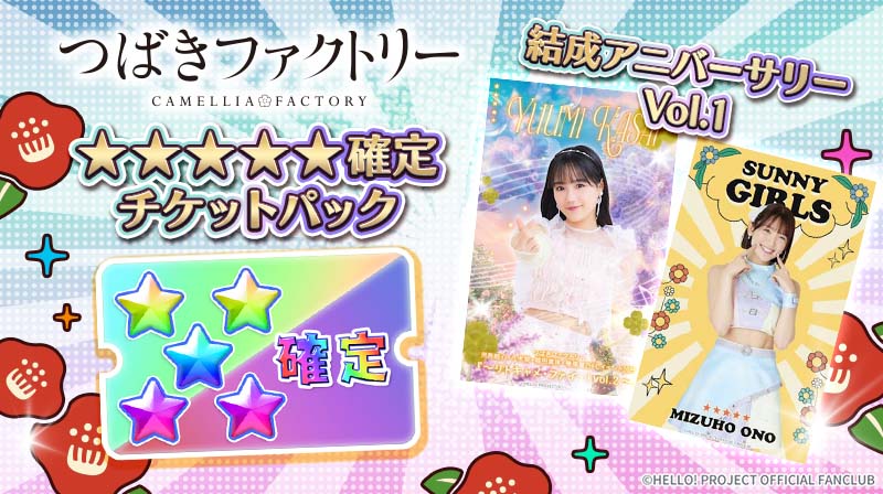 「レアリティ確定チケットパック」に、つばきファクトリーの結成11周年を記念して「つばきファクトリー 結成アニバーサリー確定チケットパック」が登場します。