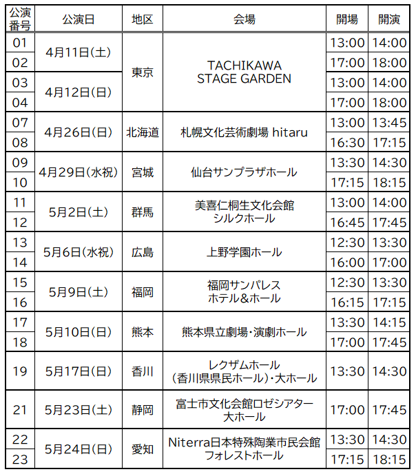 ※本公演のチケット発送は各公演9日前を予定しておりますので、お受け取りが可能なお客様のみお申込みをお願いいたします。