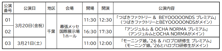 ●出演:モーニング娘。'26 / アンジュルム / Juice=Juice / つばきファクトリー / BEYOOOOONDS / OCHA NORMA / ロージークロニクル / ハロプロ研修生