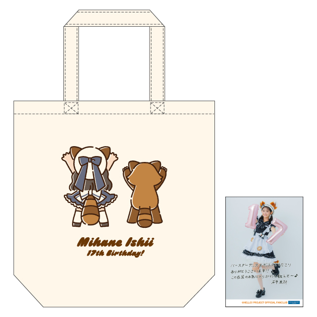 ![]() 石井泉羽バースデートートバッグ(L判生写真付き) ¥ 4,000 サイズ:W240mm×H200mm |