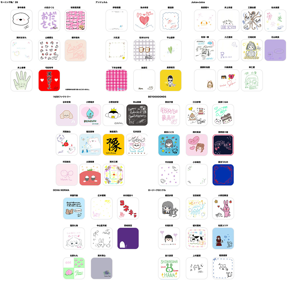 ![]() ハンカチ【全65種】 ¥ 1,500 メンバー直筆デザイン入りのハンカチです! サイズ:約200×200mm 素材:ポリエステル 仕様:片面印刷 *商品の仕様、デザイン、写真はイメージのため、実際と異なる場合がございます。予めご了承下さい。 |