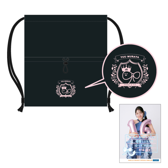 ![]() 村田結生バースデーナップサック(L判生写真付き) ¥ 3,700 サイズ:約W370×H405mm |