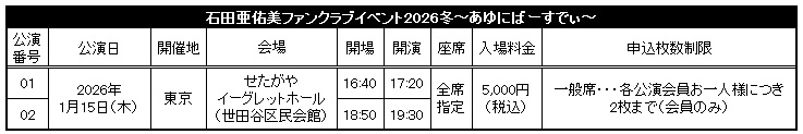 Hello! Project会員の皆様へ、★ファンクラブ会員限定イベント★『石田亜佑美ファンクラブイベント2026冬~あゆにばーすでぃ~』NEXT先行受付のお知らせ