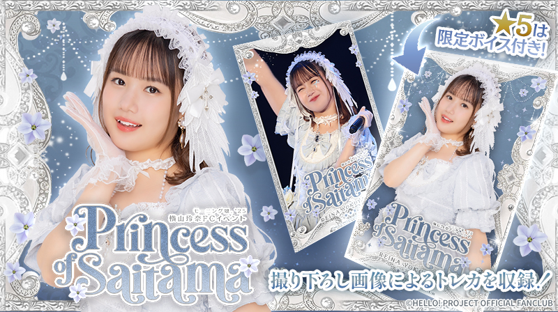 モーニング娘。'25 横山玲奈FCイベント 〜Princess of Saitama〜の模様を収めた撮り下ろし画像によるトレカを収録したカードパックです。