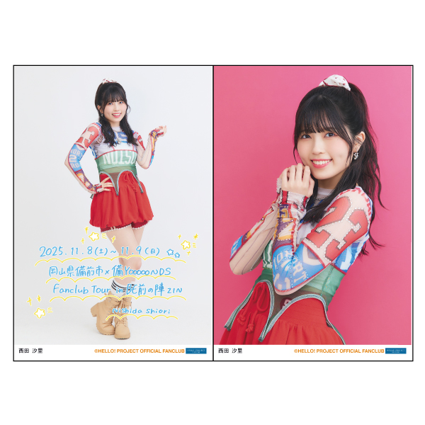 ![]() 日付入りソロA5ワイドサイズ生写真2枚セット【西田汐里】 ¥ 1,200 |