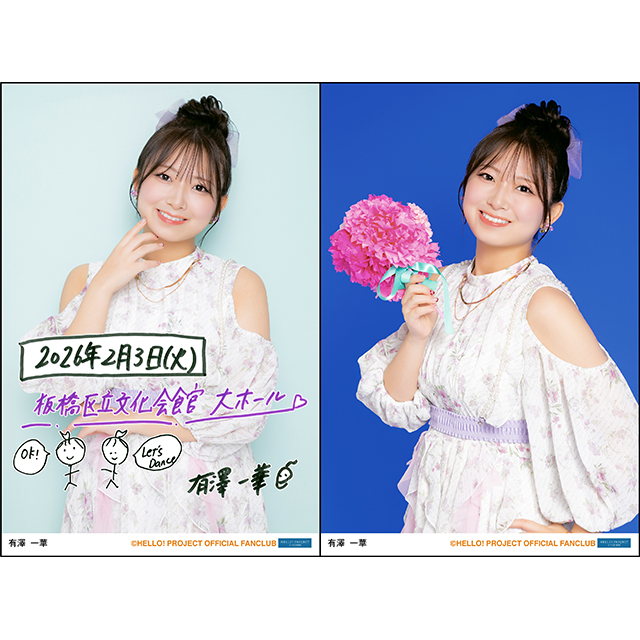 ![]() 日付入りソロA5ワイドサイズ生写真2枚セット【有澤一華】 ¥ 1,200 |