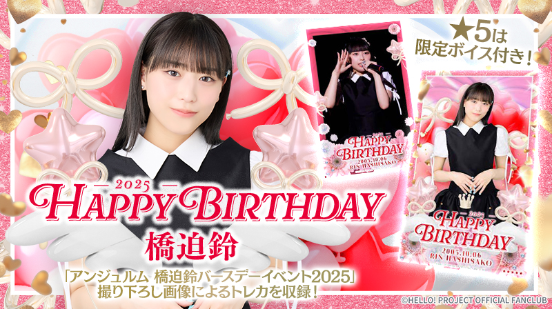 アンジュルム 橋迫鈴バースデーイベント2025の模様を収めた撮り下ろし写真などを含むトレカによるカードパックです。