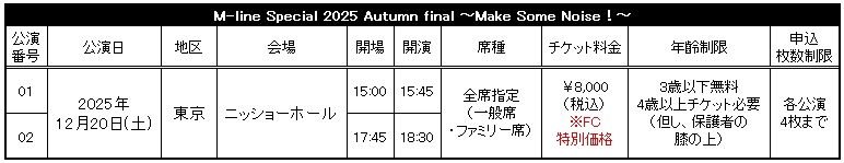 Hello! Project会員の皆様へ向け、『M-line Special 2025 Autumn final ~Make Some Noise!~』のFC NEXT先行受付を行います。
