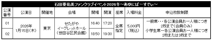 ★ファンクラブ会員限定イベント★『石田亜佑美ファンクラブイベント2026冬~あゆにばーすでぃ~』開催決定!