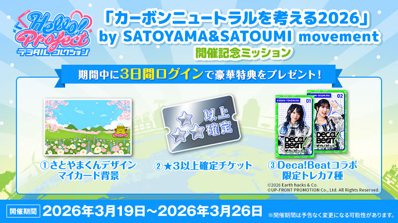 「Hello! Projectデジタルコレクション」にて「カーボンニュートラルを考える 2026 by SATOYAMA & SATOUMI movement」 開催記念ミッションを開催!
