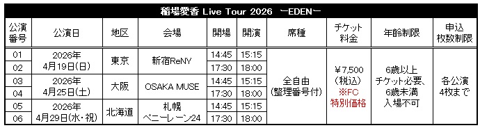 『稲場愛香 Live Tour 2026 ーEDENー』 FC先行受付のお知らせ
