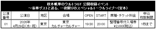 宮本佳林出演 FM FUJIラジオ番組「秋本帆華のウルトラGT 公開収録イベント~豪華ゲストと送る、一夜限りのスペシャルトーク&ライブ~」FC先行受付のお知らせ