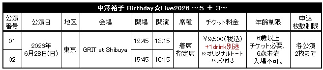 中澤裕子の2026年のバースデーライブが決定しました。