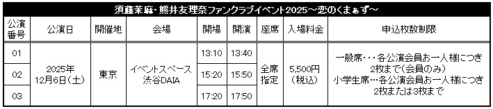 ★ファンクラブ会員限定イベント★「須藤茉麻・熊井友理奈ファンクラブイベント2025~恋のくまぁず~」開催決定!