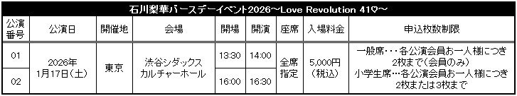 ★ファンクラブ会員限定イベント★『石川梨華バースデーイベント2026~Love Revolution 41♡~』開催決定!