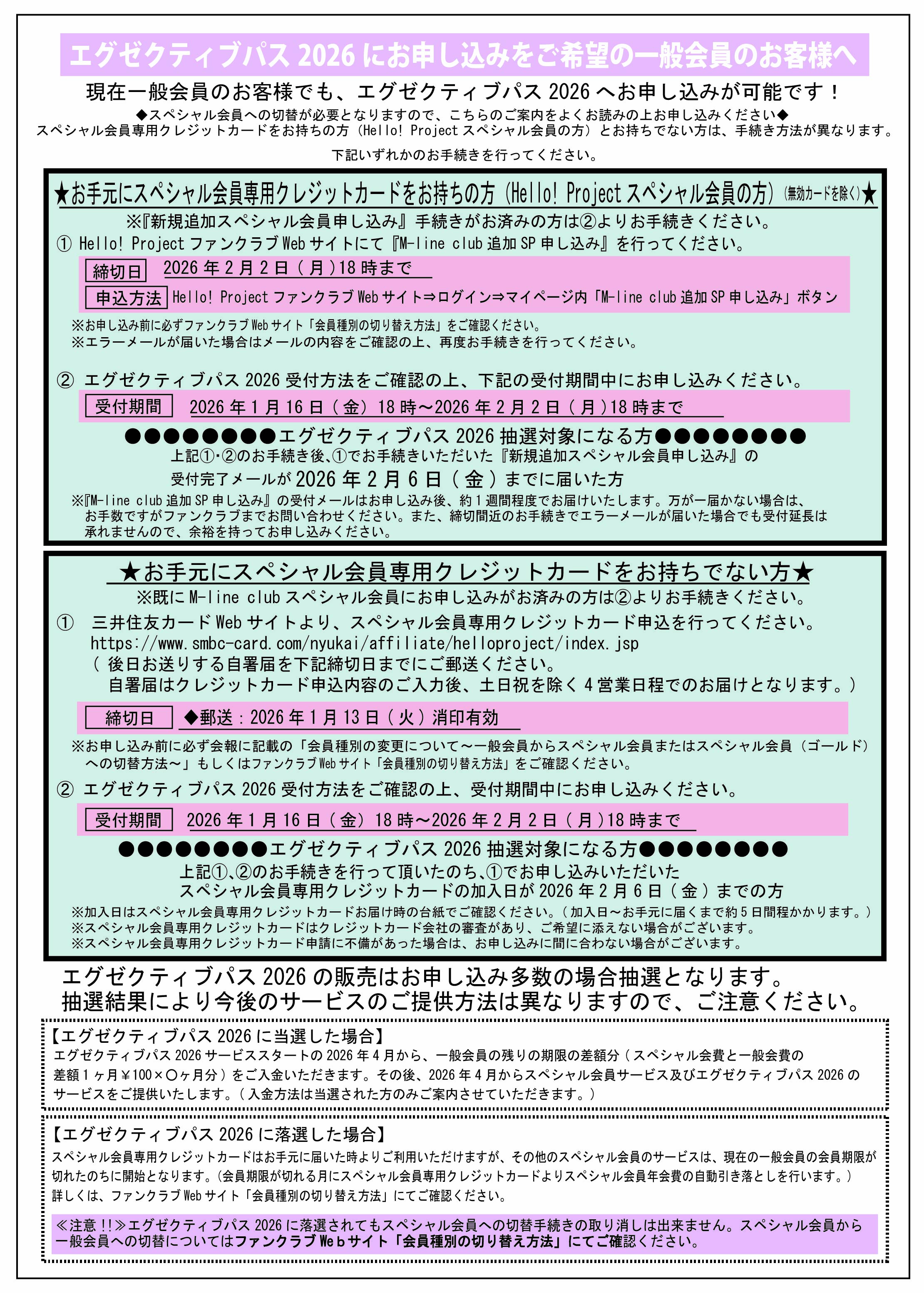 ※2025年9月末、2025年10月末、2025年11月末期限の方は、エグゼクティブパス2026申込開始までに切り替え手続きを行なってください。