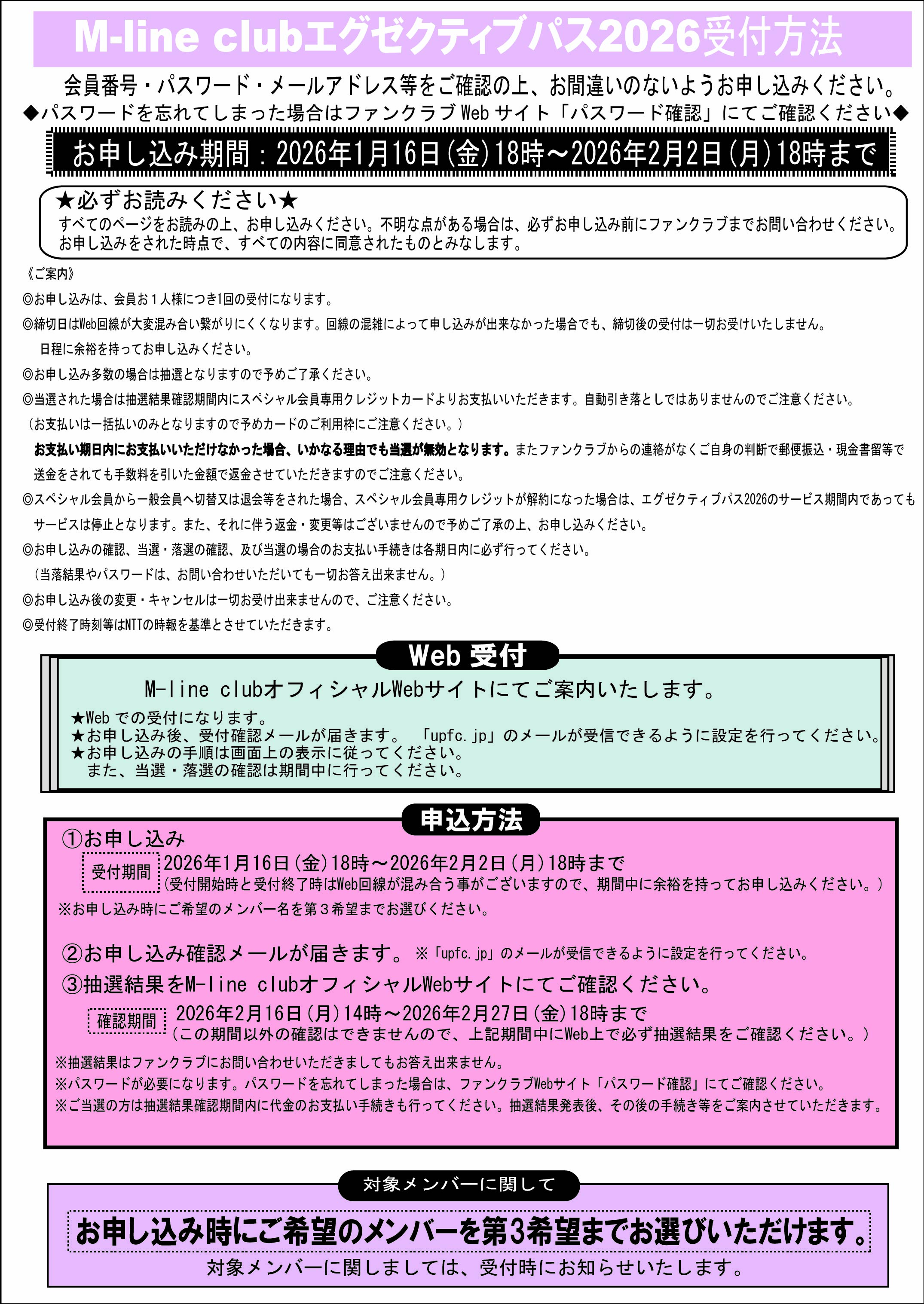 エグゼクティブパス2026申込開始まで会員期限がある方が対象となります。
