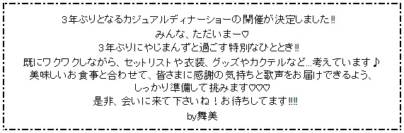 『矢島舞美カジュアルディナーショー2026 お久しぶり♡ただいま♡』FC先行受付のお知らせ