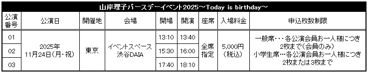 ★ファンクラブ会員限定イベント★「山岸理子バースデーイベント2025~Today is birthday~」開催決定!