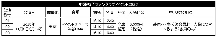 「中澤裕子ファンクラブイベント2025」の2次受付を行います。