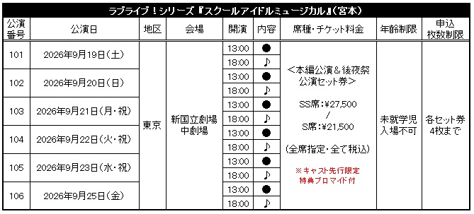 ※SS席の本編公演&後夜祭公演セット券、S席の本編公演&後夜祭公演セット券は一般発売での販売はございません。