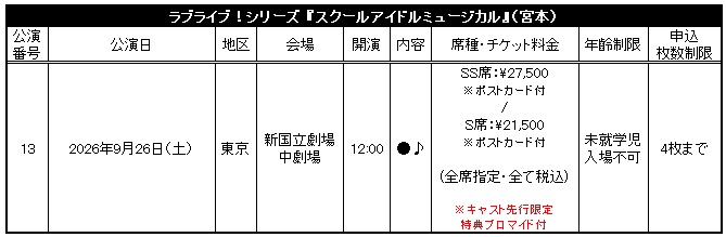 本公演のチケット発送は2026年9月9日(水)を予定しておりますので、お受け取りが可能なお客様のみお申込みをお願いいたします。