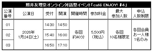 ★M-line club会員限定★熊井友理奈オンライン対話型イベント「café ENJOY! #4」開催決定!